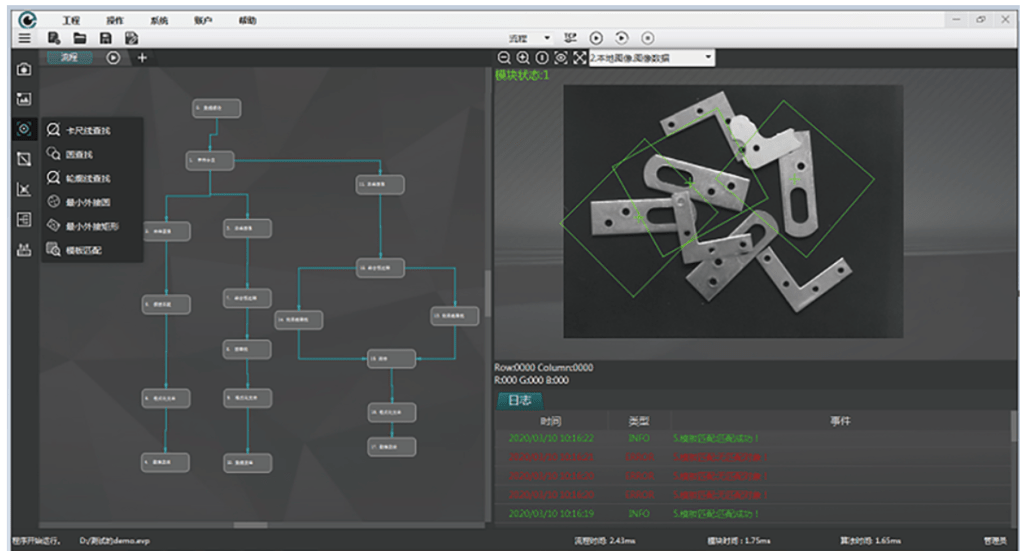 ESVision是一款功能強大的2D機器視覺軟體,整合機器視覺多種算法組件,適用於多種應用,可快速組合算法,實現對工件或被測物的搜尋、測量、缺陷檢測等。