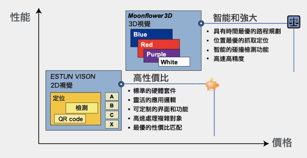 埃斯頓擁有強大的視覺分析工具庫,可簡單靈活的建立機器視覺應用方案,能夠滿足機器視覺應用領域中物料識別、定位分揀、輸送帶跟隨、測量、QR Code/條碼/字符識別、檢測等功能需求,具有功能豐富、性能穩定、用戶操作界面友好的特點。支援TCP/IP、I/O、串口等通信協議,可便捷快速地與機器人、PLC及周邊設備完成數據交換。