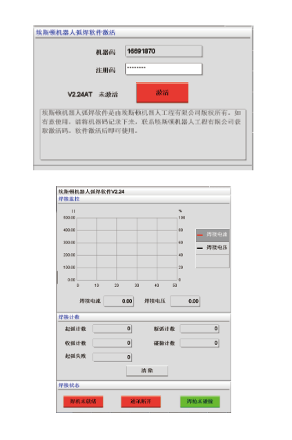 ESTUN焊接軟體套件將機器人和焊機結合為一體,支援 CANopen 和 I/O 方式進行通訊,機器人與焊機之間可以即時交換大量數據。軟體套件除了具備焊接基礎功能外,還支援註冊碼認證功能、曲線圖監控電流、電壓以及填料速度;另有分段焊接功能,間斷焊接功能,擺動焊接等高級功能。