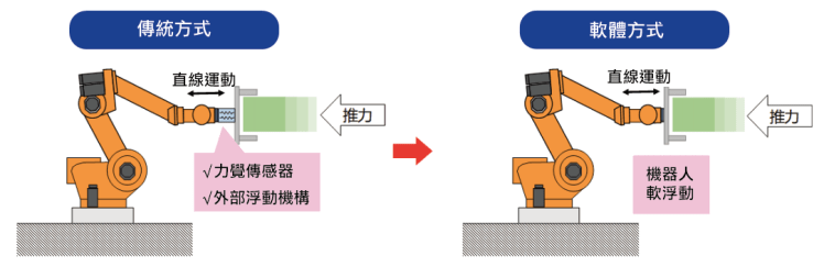 Estun SoftFloat軟體是埃斯頓開發的大陸首家擁有完全自主知識產權的直線軟浮動專用軟體。機器人在取件過程中,會隨著壓鑄產品受力頂出的方向直線運動,以防止機器人在取件過程中與產品頂出方向不一致而導致產品、模具或夾爪等損壞,這種彈性特性就是機器人的直線軟浮動功能。