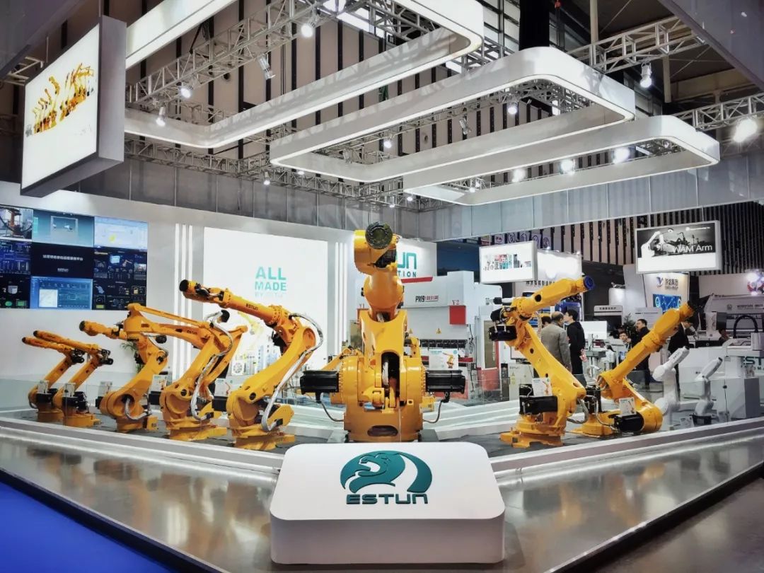 在“機器人+”發展戰略下,根據不同行業的客戶需求,埃斯頓打造了以機器人為主體的標準化機器人工作站,包括折彎工作站、塗膠工作站、堆棧工作站、等離子切割工作站、沙福電源焊接工作站等十餘個系列機器人工作站,此次展出的“ER20機器人雙機聯動折彎單元”採用雙機聯動折彎,使用公司最新研發的視覺對中系統,在安全生產的前提下最大化提高生產效率,降低了人工勞動強度,保證了產品質量的穩定性……更多詳見埃斯頓微信公眾號。