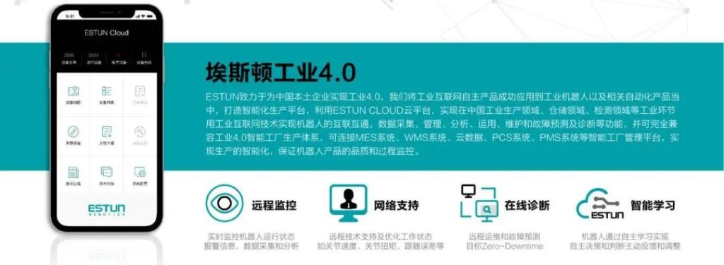 在5G、人工智慧、工業互聯網領域中,埃斯頓均進行了超前的佈局。 Estun Cloud工業雲平台,為數字化工廠提供整套資訊化解決方案,在遠程監控,遠程診斷,智能學習方面具有卓越的性能。