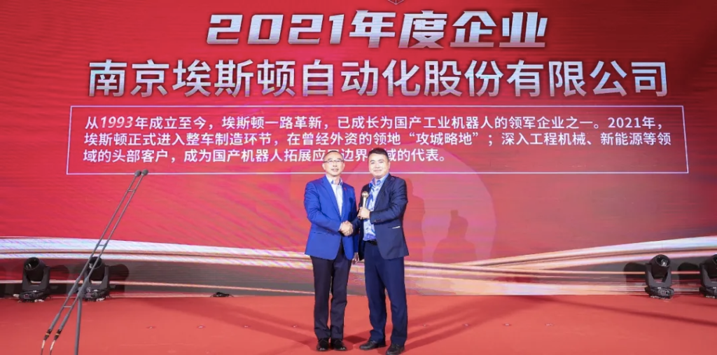 埃斯頓年銷售量突破第10,000台榮獲2021年工業機器人產業最佳企業獎