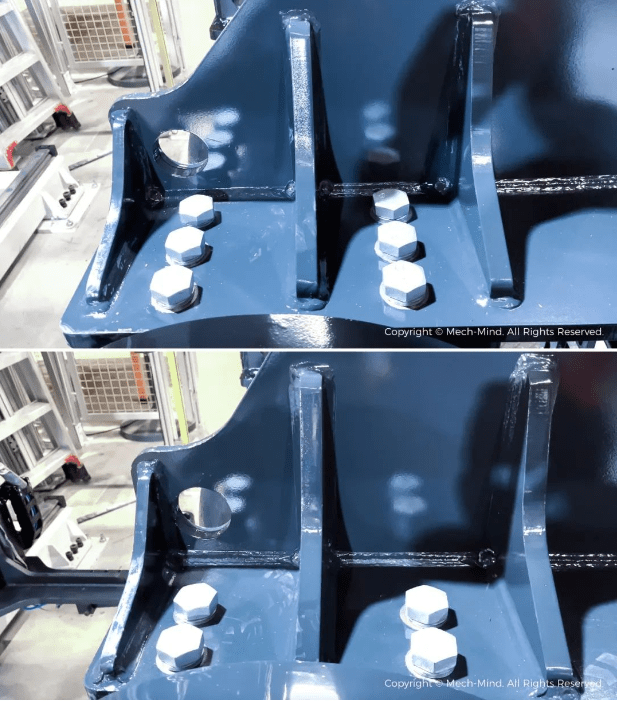 以某大型工程機械企業裝載機製造基地為例,該企業引入了梅卡曼德3D視覺,用於對裝載機車架兩側翼板上的螺栓進行高精度定位,引導桁架機器人進行螺栓擰緊,完成裝載機驅動橋和車架精準裝配。通過這一創新,該企業裝配線生產質量及效率得到雙重提升,實現自動化、柔性化生產。