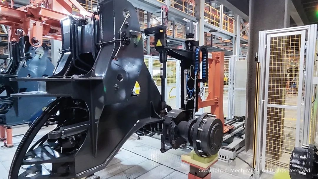 以某大型工程機械企業裝載機製造基地為例,該企業引入了梅卡曼德3D視覺,用於對裝載機車架兩側翼板上的螺栓進行高精度定位,引導桁架機器人進行螺栓擰緊,完成裝載機驅動橋和車架精準裝配。通過這一創新,該企業裝配線生產質量及效率得到雙重提升,實現自動化、柔性化生產。