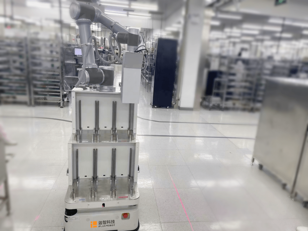 用戶引入了迦智科技的智造物流解決方案,透過複合移動作業機器人,結合迦智多機器人調度管理系統CLOUDIA和物料管理系統MCS,符合無塵室要求,完成晶片Tray盤在線邊料架和指定機台之間的自動化精準上下料,產線間物流信息全流程可追溯,大幅提升產線效率,助力打造“智慧化工廠”。