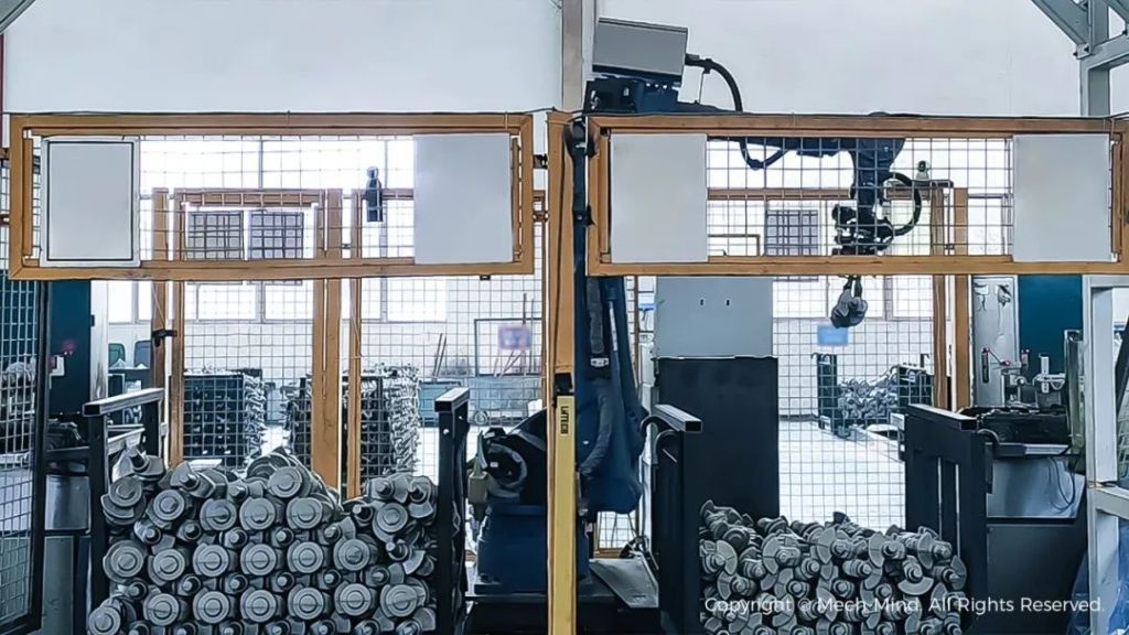 - 高精度結構光工業3D相機Mech-Eye PRO M,可對表面暗色、反光、結構複雜的缸體產生高品質3D點雲資料;視野滿足較大尺寸工件的高精度定位需求。
