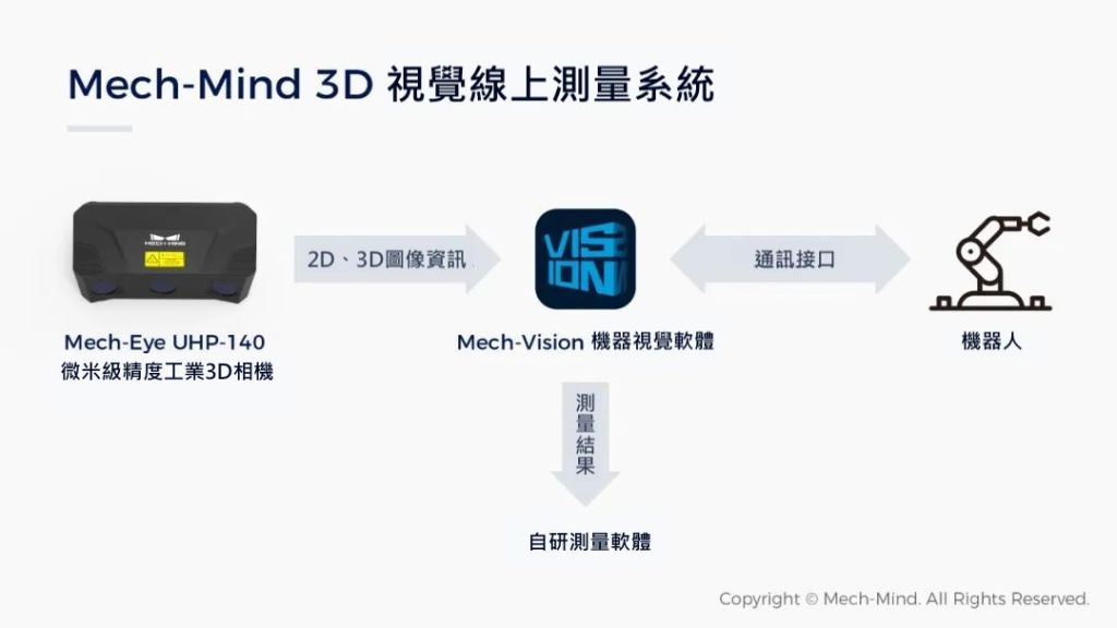 基於車廠對於彈性、產能、品質等方面的高要求,梅卡曼德全新升級3D視覺線上測量系統,該系統可將測量工位併入生產線,實現汽車零件、車身分總成、白車身總成的100%自動化線上測量。目前,梅卡曼德線上測量系統已廣泛應用於零件、焊接、壓鑄、電池等生產環節。透過即時監控產品製程尺寸波動,對生產過程進行大數據累積和品質監控,為生產改進提供數據支持,協助汽車等產業客戶高標準、高效率交付。