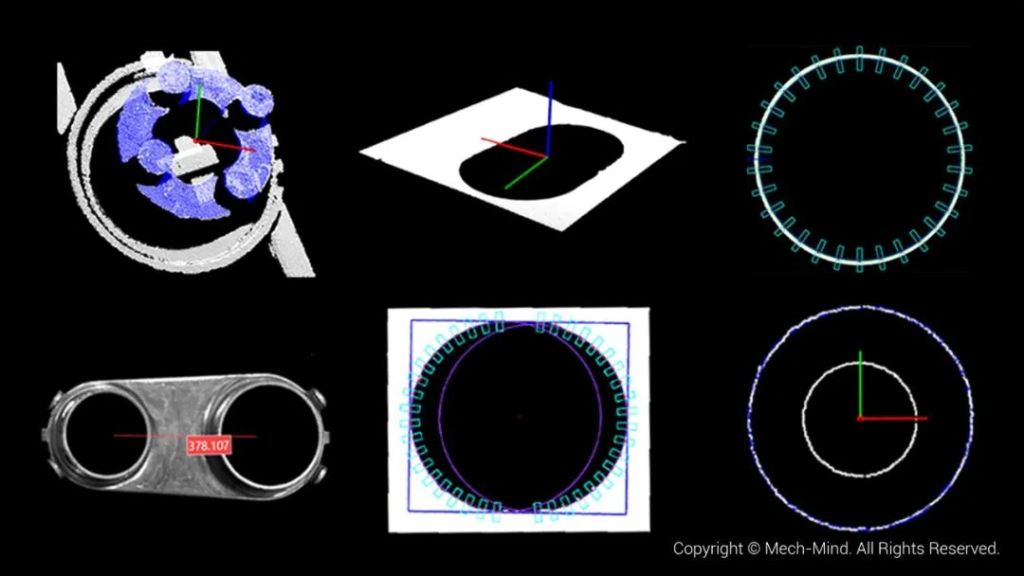 自研Mech-Vision機器視覺軟體,內建先進3D視覺演算法。取得Mech-Eye採集並產生3D資料後,對工件特徵(特徵孔、角點、弧線等)進行精確辨識