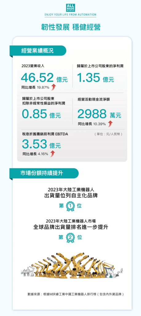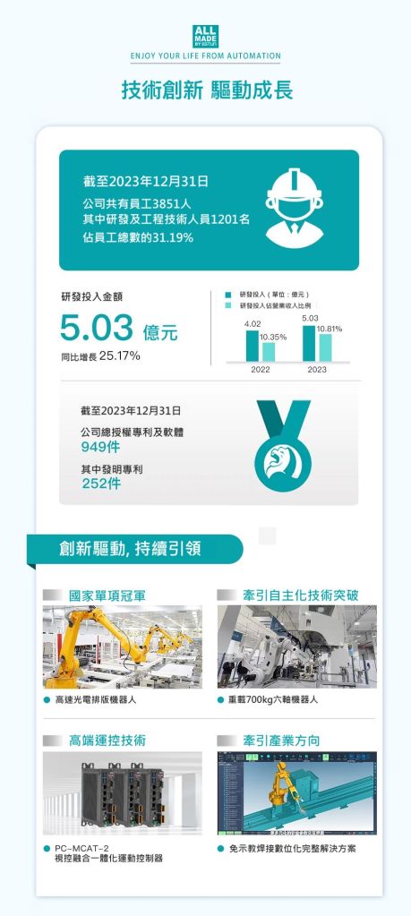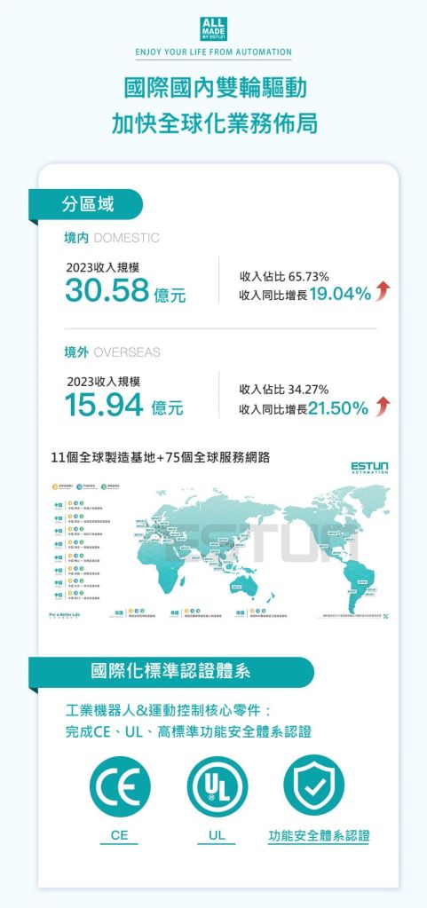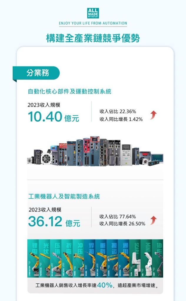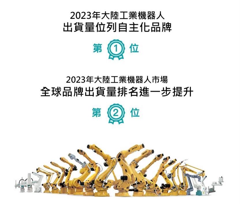 埃斯頓為大陸機器人排名第一世界機器人排名第六的工業機器人品牌年銷量近2萬台提供荷重3-600kg, 臂展400-3200mm長的各式包含SCARA, 通用六軸, 焊接及堆棧機器人等產品