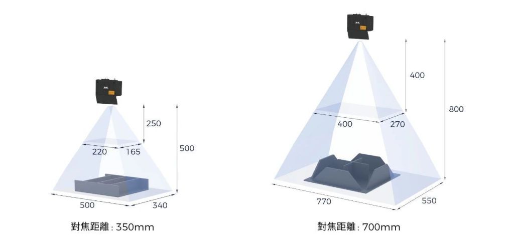 Mech-Eye Welding具備小基線大視野的特點,相較於傳統DLP結構光相機,視野範圍增大了100%,可輕鬆覆蓋不同尺寸的目標工件。即使在700mm對焦距離下,也能確保對焊接件高品質成像,大幅提高生產的靈活性和效率。