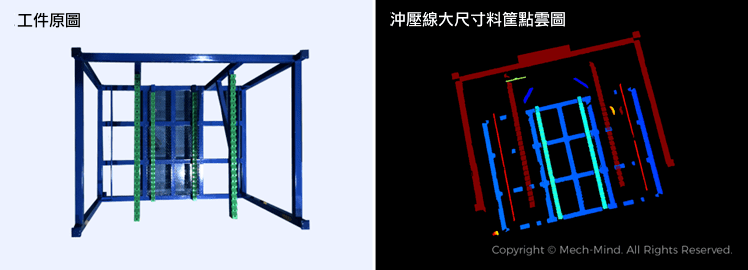 Mech-Eye LSR XL超高解析度,超大掃描範圍,可輕鬆應對大棧型、大托盤、超大框&掛架等遠距離場景;>3.2m 處,可對尺寸較大、結構複雜的沖壓線料筐及其細節特徵高品質成像。