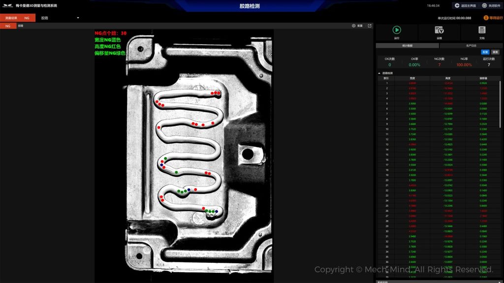 汽車電子控制單元(ECU)膠路檢測:先進AI成像演算法,可對高亮或半透明的膠路高品質成像。自研3D測量演算法,將膠路的外觀形狀、寬度、高度、截面積進行檢測,並對是否有斷膠、溢膠和氣泡等進行判斷。