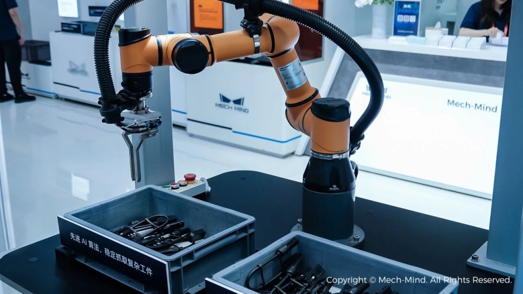 現場也展出了黑色線纜抓取、小圓環抓取、小螺栓抓取等多個小型工件抓取單元,展示出梅卡曼德AI+3D視覺系統對於各類精密零件的高速處理能力。