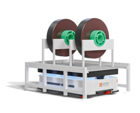 用戶現場輥分完成後,料捲下放到備用料箱,潛伏舉升AMR根據指令到達任務點,實現料箱空滿交換;接著自主穿越捲簾門、風淋門,乘坐電梯,經由車間內及外部走廊,將滿料盤搬運至指定工位,並將任務執行情況即時回饋給MES系統。