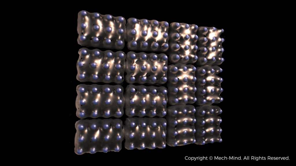 Mech-Eye DEEP擁有超大視野和超大景深,其超大的視野範圍使得一次掃描即可覆蓋更大區域,能輕鬆應對1200×1000×1500 mm的超大棧板型式以及來料托盤位置不固定的情況。尤其在遠距離掃描時,能大幅減少Z軸的點雲波動。即使面對曲面棧板型式,Mech-Eye DEEP也能提供更加平滑和穩定的深度信息,避免點雲失真。