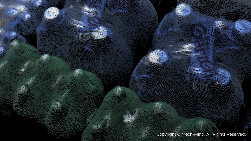 梅卡曼德為該工作站選配了Mech-Eye DEEP物流搬運場景專用工業級3D相機。透過對光學元件和核心成像算法的不斷升級,Mech-Eye DEEP能夠捕捉到透明且反光的膜包足夠的條紋信號,精確提取表面細微特徵,生成輪廓清晰、細節完整的3D點雲。透過為3D視覺系統提供精確的三維信息,確保卸棧過程更加穩定可靠。