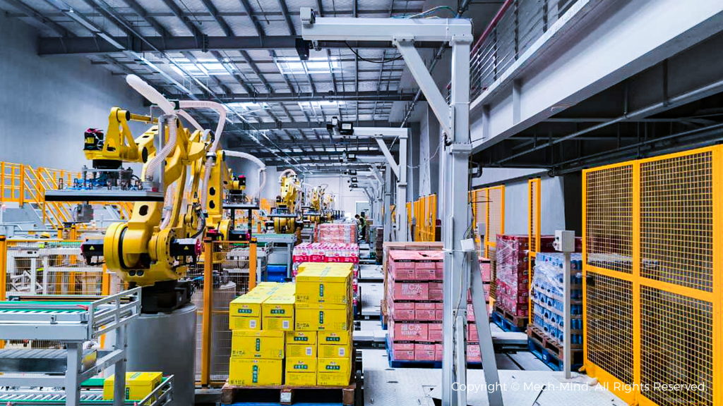 在出貨環節,需要對大量透明塑膠膜包和紙箱進行卸棧作業。梅卡曼德所部署的物流卸棧工作站共設置了7台3D視覺感測器,透過精確感知透明膜包和紙箱的三維信息規劃最佳抓取方式與路徑,引導機器人高效完成卸棧任務。先進的AI技術能夠兼容現場上百種不同品規的商品,使得出貨環節更加高效便捷,並確保了從入庫到出貨各個物流環節的動態平衡。
