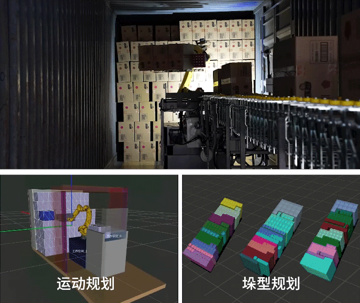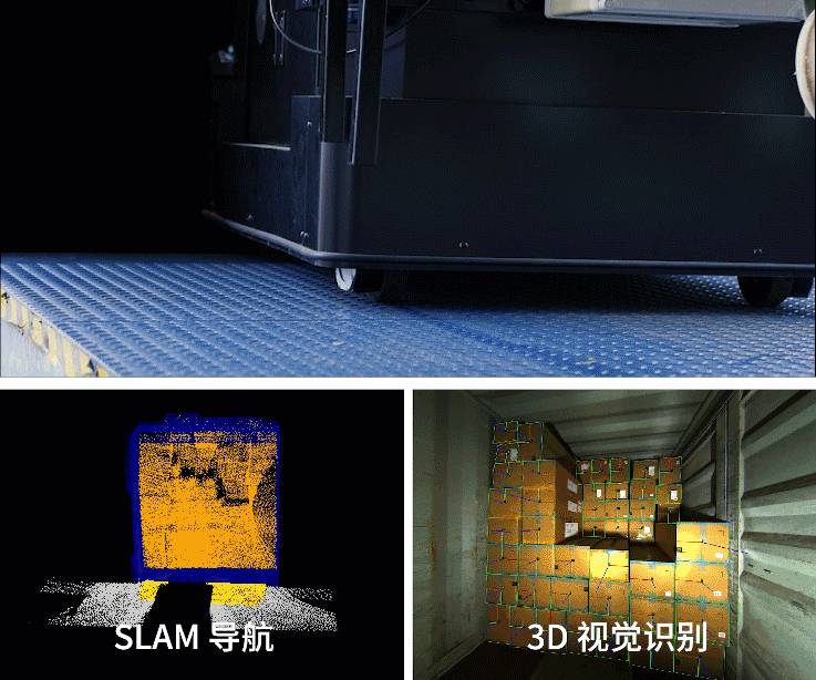 自適應:依靠強大的 3D 視覺與深度學習算法,能夠自主適應不同紙箱、集裝箱的類型與尺寸,快速投入使用。