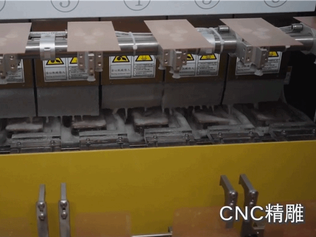 精雕磨邊結合CNC與機器人技術,透過金剛石鑽頭對玻璃邊緣進行倒角與鑽孔,精準塑造曲面雛形。在此環節中,客戶面臨多項挑戰,包括人工上下料效率低,難以支援多台CNC同步運行,且無法有效追溯不良品。此外,精雕製程繁瑣,涵蓋清洗、疊片、打磨、分片等步驟,極需高效且整合性強的一站式解決方案。